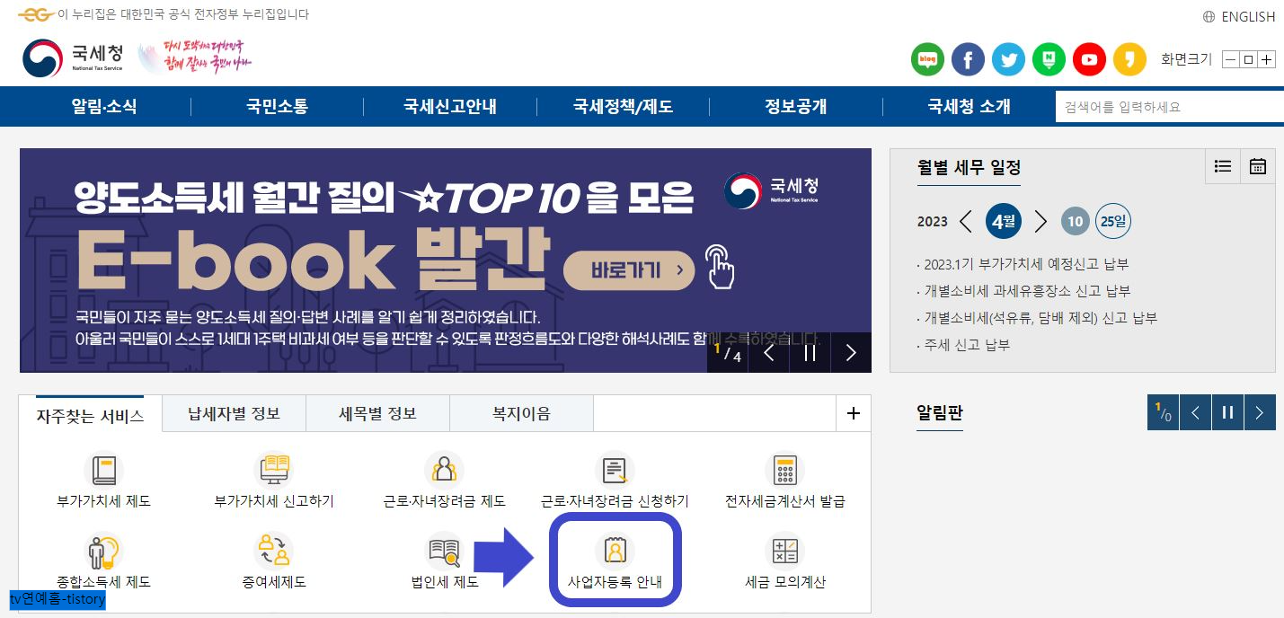 2) 국세청 홈페이지 첫 화면에서 사업자등록정보에 접속합니다.