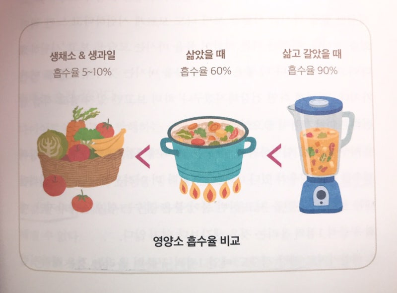 음식을 꼭꼭 씹어먹는 매실액, 과일식초, 흑초, 단초로 위산 보충에 도움을 주는 발효식품과 유산균 섭취 아침에는 부드러운 죽 형태로 시작하는 것이 모두 소화에 도움이 되는 습관입니다 🙂 야채, 생으로 먹거나 삶아먹거나해독주스를 마시는 이유는 식물의 영양소를 마시기 위해서입니다.식물성 영양소, 피토케미칼은 자외선은 물론 각종 미생물과 해충으로부터 몸을 보호합니다. 또한 유해산소로부터 몸을 보호하기 위한 강력한 산화방지제입니다.인간과 동물은 활성산소를 없애는 산화방지제를 만들지만 자체 생산량으로는 턱없이 부족하기 때문에 섭취가 필수입니다.해독주스 영양소 흡수율 비교 영양소 흡수를 높이기 위해 삶은 채소와 생과일을 갈아서 만듭니다.생으로 섭취했을 때보다 항산화 성분, 항암물질, 식이섬유를 최대 18배 더 흡수할 수 있다고 합니다. 해독주스의 효능소화를 촉진하고 변비를 해소한다.염증과 암세포 증식을 억제한다.식도 역류를 막아 위점액을 보호한다.혈당치를 안정시키다.유해균을 줄이고 염증을 완화한다.나쁜 콜레스테롤 수치를 낮추다.콜레스테롤의 산화를 방지하다.신경전달물질의 기능을 회복시키다.활성산소를 깨끗이 제거하다.항산화 물질이 기관지 점막의 점액을 감소시킨다.장내 유산균을 증식시켜 피부를 보호한다.세포의 기능을 유지하고 활성화한다. 부종 완화. 유산균과 유해균의 균형을 유지한다.남성호르몬을 억제하고 면역을 유지한다.습관 해독장 해독장의 무게는 몸무게의 6%, 우리 몸이 사용 전체 산소의 25%를 소모한다.패스트 푸드, 밀가루 음식, 가공 식품, 볶거나 튀긴 음식 등 서유럽화된 식단은 입에 들어가고 식도와 장을 거쳐서 비행기편으로 배출되기까지의 시간이 길다.211p장내에 머무는 시간이 길어지면 노폐물이 장벽에 오래 붙어 염증을 일으키고 이것이 궤양, 암으로 이어진다.체내에서 해독 작용을 맡은 기관은 간뿐만 아니라 장내 세균도 해독 작용을 하다. 장이 제 기능을 다하지 않으면 해독력이 떨어지고 간 기능이 약화된다. 213p면역 70%를 담당하는 곳:장독성 물질은 간장에서 해독 과정을 거치고 창자를 통해서 체외로 나온다. 이때 장내에 유산균과 섬유질이 충분하지 않으면 제대로 된 편이 만들어진 독성 물질을 배출할 수 없다. 214p장내 유산균의 놀라운 힘 1. 비타민 B군을 생성한다.2. 암세포의 생성을 막는다.3. 콜레스테롤을 낮춘다.4. 면역을 강화한다.5. 장내 독소 생산을 억제한다.6. 노화를 억제한다.7. 감기로 인한 소화 기계 증상을 완화한다.8. 변비와 설사를 예방한다.9. 스트레스로 인한 여러 증상을 감소시킨다.실천 방법 1. 칫솔부터 점검한다.칫솔을 소금물에 담그고 보관하고 실천 방법 2. 얼굴보다 소중한 피부, 점막을 지키는 점막을 보호하는 효소, 유산균, 발효 식품 해독 주스 마시는 법 3. 위산을 보호하는장해독인의 위와 소의 위 음식물이 위로 들어오면 3번에서 1시간 정도 머무르지만 3번은 위산의 영향을 받지 않고 자기 효소만 사용한다.채소를 먹었을 경우 채소에 들어 있는 소화효소도 함께 이용해 분해한다. 4번은 3번에서 분해되지 않는 음식을 소화시키는 곳이고 가공식품이나 구이는 3번에서 소화과정을 거치지 않으므로 4번에서 위산으로 분해 또는 5번에서 췌장의 효소로 소화시켜야 한다.5번이라도 소화가 안 되면 결국 소장과 대장 유산균으로 소화를 완성해야 한다. 226p장과 우리의 건강을 위해서는 가공식품과 불고기를 최대한 멀리하고 채소와 과일 위주로 섭취하는 것이 좋다.입에서 최대한 많이 씹어 효소를 많이 만들어내는 것도 중요하다. 간 해독 피로 풀어!지방으로 된 노폐물을 해독하는 간유에 잘 녹는 독성물질을 수용성으로 바꿔 소변과 대변을 통해 내보내는 역할을 한다.간은 혈액을 계속 정화해야 한다.간에 지방이 많아지면 해독 기능이 떨어지고 대사 기능에 문제가 생겨 만성적인 피로를 느끼게 된다. 229p 변비도 결국 간에서 시작된다.변비는 간 대사 능력과 심리적 문제에 크게 영향을 받는다.가급적 밀가루 음식과 술, 기름진 고기 등을 멀리하고 몸에 들어오는 독성물질을 제때 해독해 간이 정시에 퇴근할 기회를 주자. 233p 실천방법 1. 스트레스를 피하는 방법 2. 지방과 절교하기 어려운 콜레스테롤을 줄이는 것이 우선.실천방법 3. 식이섬유를 섭취할 것 폐의 해독, 부아가 다스리는 폐를 진정시킬 것폐가 건강하지 않으면 웃을 수 없다.내가 어떻게 생각하느냐는 마음가짐이 중요하다.폐는 피부와 함께 휘발성 독성물질을 배출하는 중요한 해독기관. 실천방법 1. 심호흡 실천방법 2. 기도를 연다.실천 방법 3. 청나라아 주스로 체내의 PM2.5을 씻어 청폐 주스는 해독 주스에 오미자, 도라지, 생강, 유자 등 한가지 재료를 넣고 마시는 방법.이번 해독 주스를 읽으면서 느낀 점은 좋은 습관이 모여서 건강을 이룬다는 점입니다.해독 주스도 습관의 하날지도 모르고, 채소 과일을 꼭꼭 씹어 마실 수 있고, 가공 식품을 멀리할 수 있고, 재료를 조금만 엄격히 선택할 수도 있습니다.여러가지 방법이 있습니다.사람마다 다르다고 생각합니다.실천하면서 자신만의 건강 법을 만들어 보세요.저의 