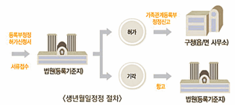 생년월일 정정 허가 – 가족부와 주민등록 생년월일이 다를 경우