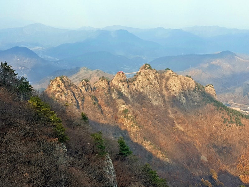 연화저수지 기슭에서 보면 구봉산은 그다지 높지 않아 보이지만 실제로는 해발 1,000m가 넘는 높은 산이다. 정상에 오르는 것은 매우 어려운 산이다.